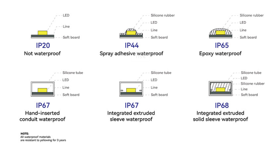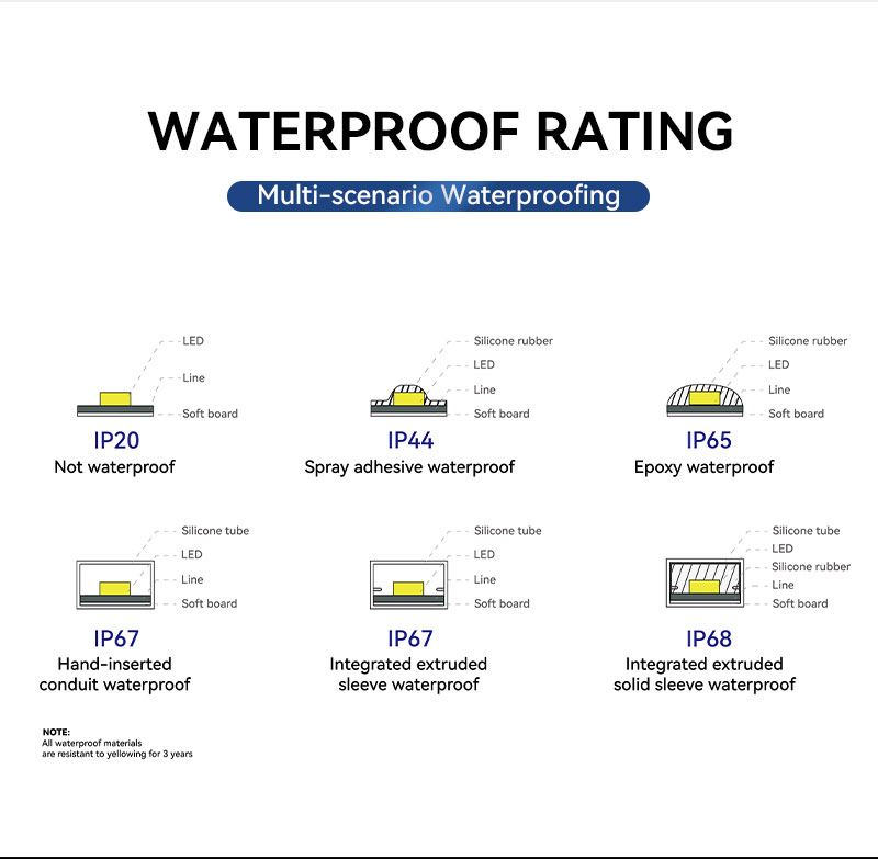 A : Bande lumineuse LED (perle de lampe 2835/5050/2216/3014/3838) ; Bande LED COB ; Flex néon LED (série à éclairage latéral, série à lumière positive, série D à grand angle lumineux) ; Lumières linéaires.